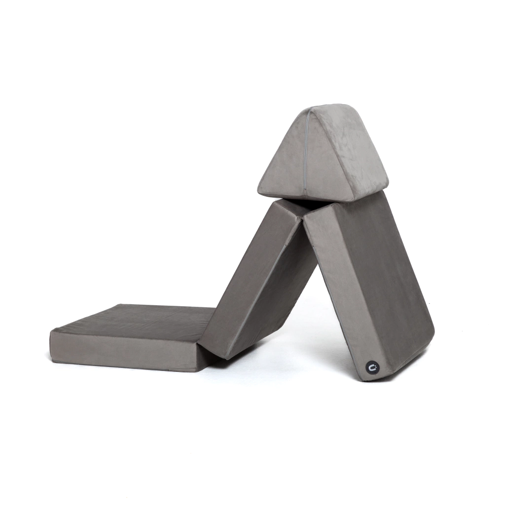 Al puff MED le agregamos un triángulo, llevando las posibilidades de juego y comfort a otro nivel! El triángulo es un gran aliado en carreras de obstáculos, y un respaldo increíble! Para apoyar las piernas, hacer de banquito o pizarrón, el triángulo es el complemento perfecto para el MED.